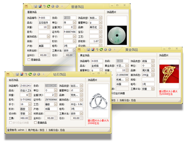 - 基础资料录入,会员档案的管理、采购入库、销售开单、饰品盘点